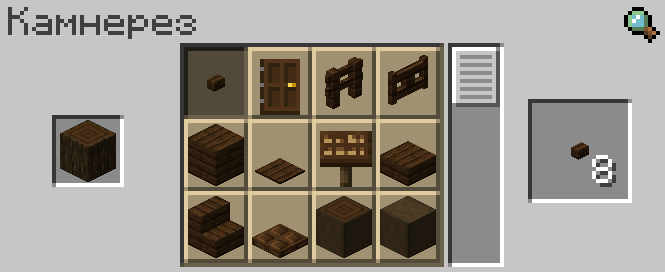 ❗ В камнерез можно положить только бревна дерева, предметы которого вы хотите получить.