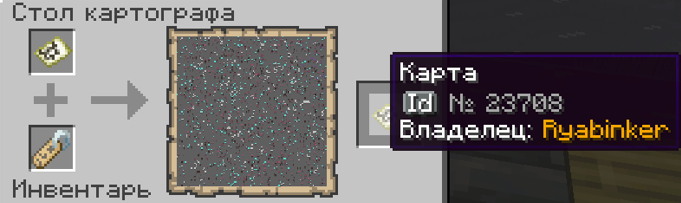 На столе картографа добавлена возможность использовать бирку и красную стеклянную панель. Бирка добавляет в описание предмета карты никнейм владельца. Красная стеклянная панель делает карту некопируемой для всех, кроме создателя карты.
